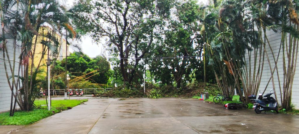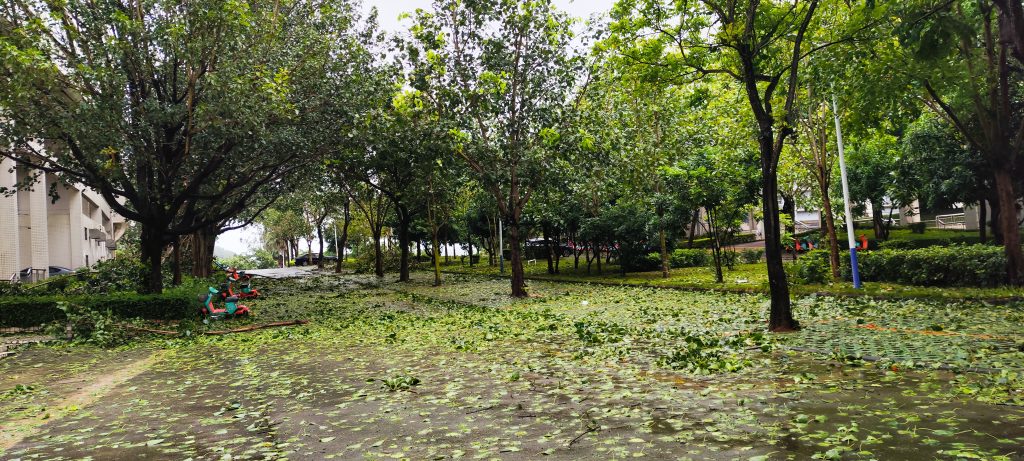 这台风会选时间,正好卡新生开学报道,惨不忍睹,基本全倒下了,也是当了一回战地记者。
