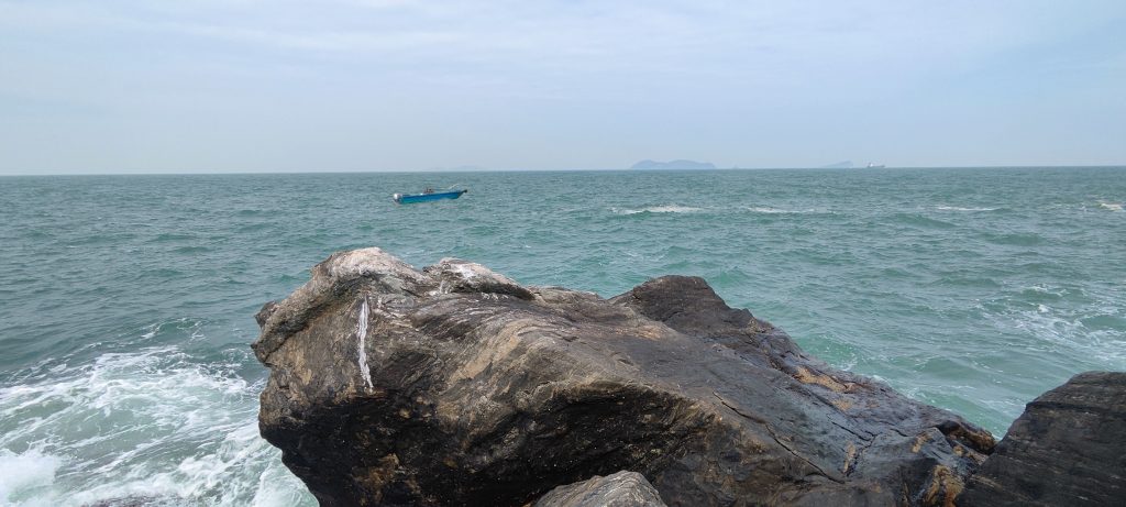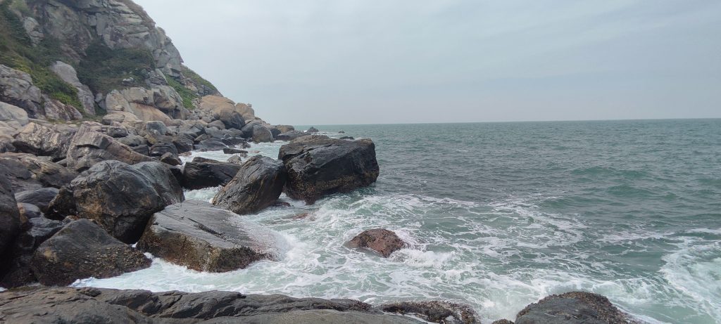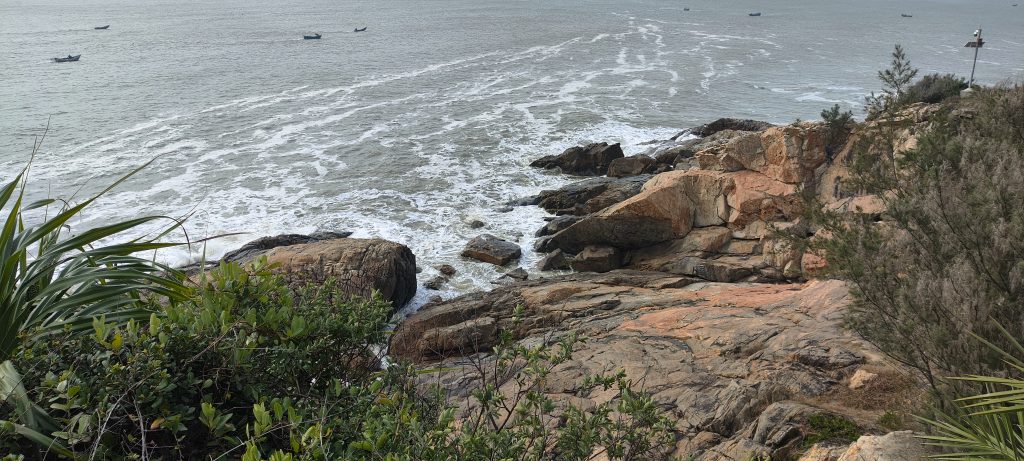 跟同门一起去采样,他这采样有点艰辛,既要出海,又要爬岛。