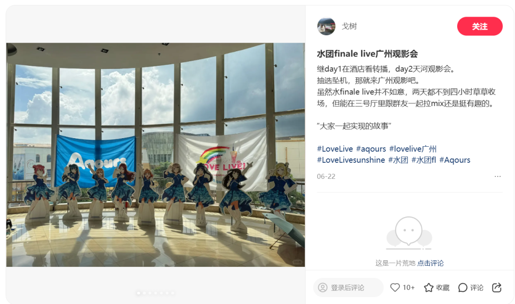 继day1在酒店看转播,day2天河观影会。抽选坠机,那就来广州观影吧。虽然水finale live并不如意,两天都不到四小时草草收场,但能在三号厅里跟群友一起拉mix还是挺有趣的。“大家一起实现的故事”