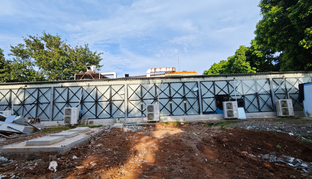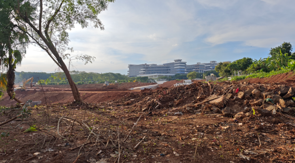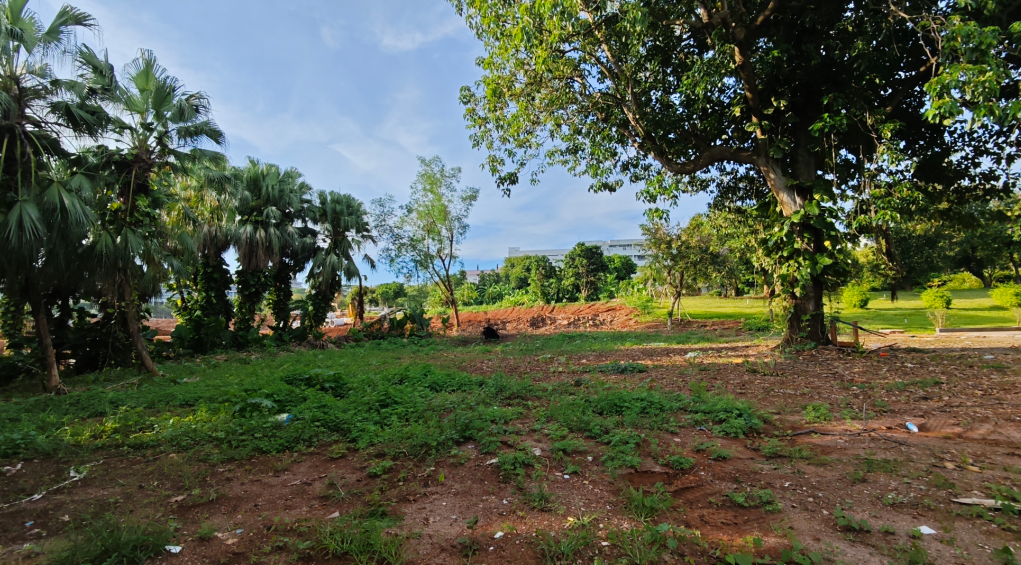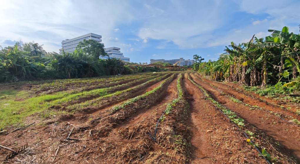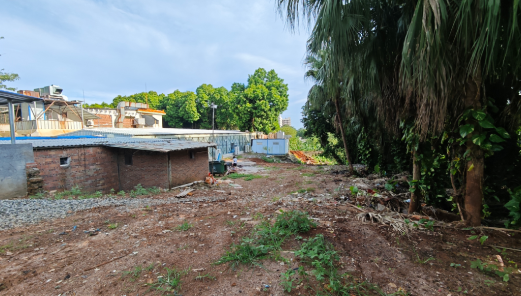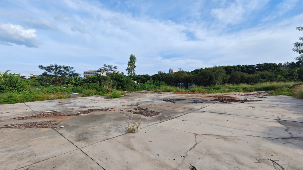 在新实验楼后面,中铁中建项目部左侧泥路进去有一处破败的空地,再深入进去,右侧还存在连条的田地,都还种着菜,也不知道是谁种的。
