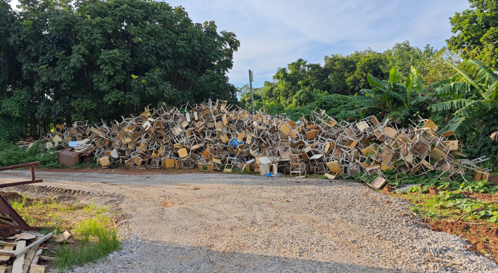 教工饭堂那边宿舍的路封了,那这让我更好奇了,绕了一圈,发现这个可以从宿舍区中走野路过来,冲,原来还是“座椅坟场”,教工饭堂后面也有很大一块面积没开发。