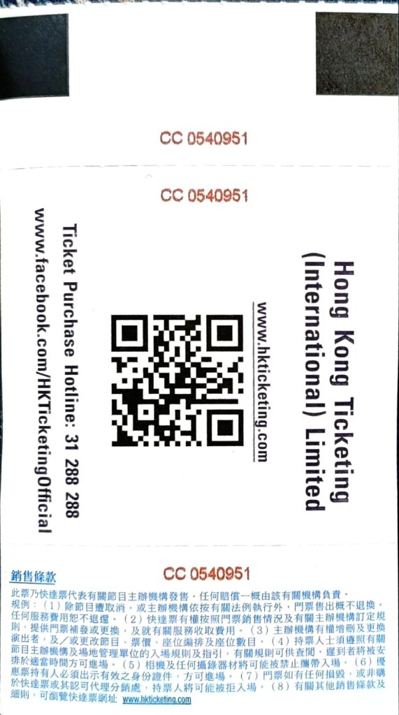 门票:还是香港好,还有实体门票,甚至提前半个月寄过来。