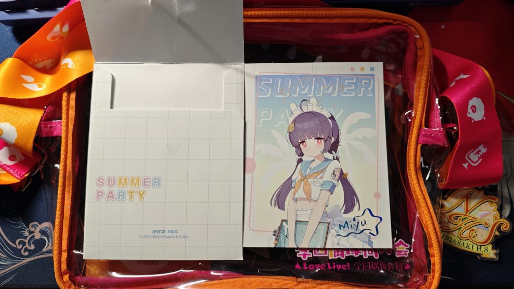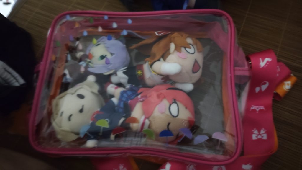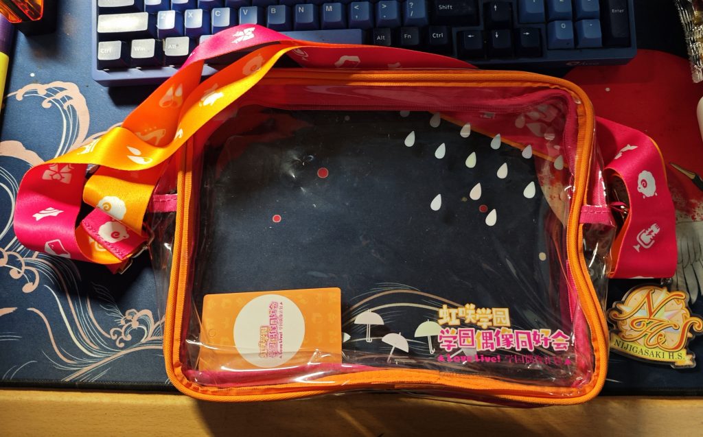 透明包正好拿来装娃,放床上太容易跑了,装起来就安全多了,但就是这个虹咲包为什么送了个碧蓝航线的小卡,砸场子呢这是。