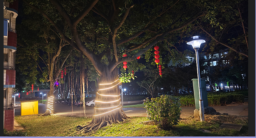 年味渐浓,蝴蝶胡开始清淤,校门口开始装灯笼,海霞旁边的树也做起了亮化,颇为喜庆。